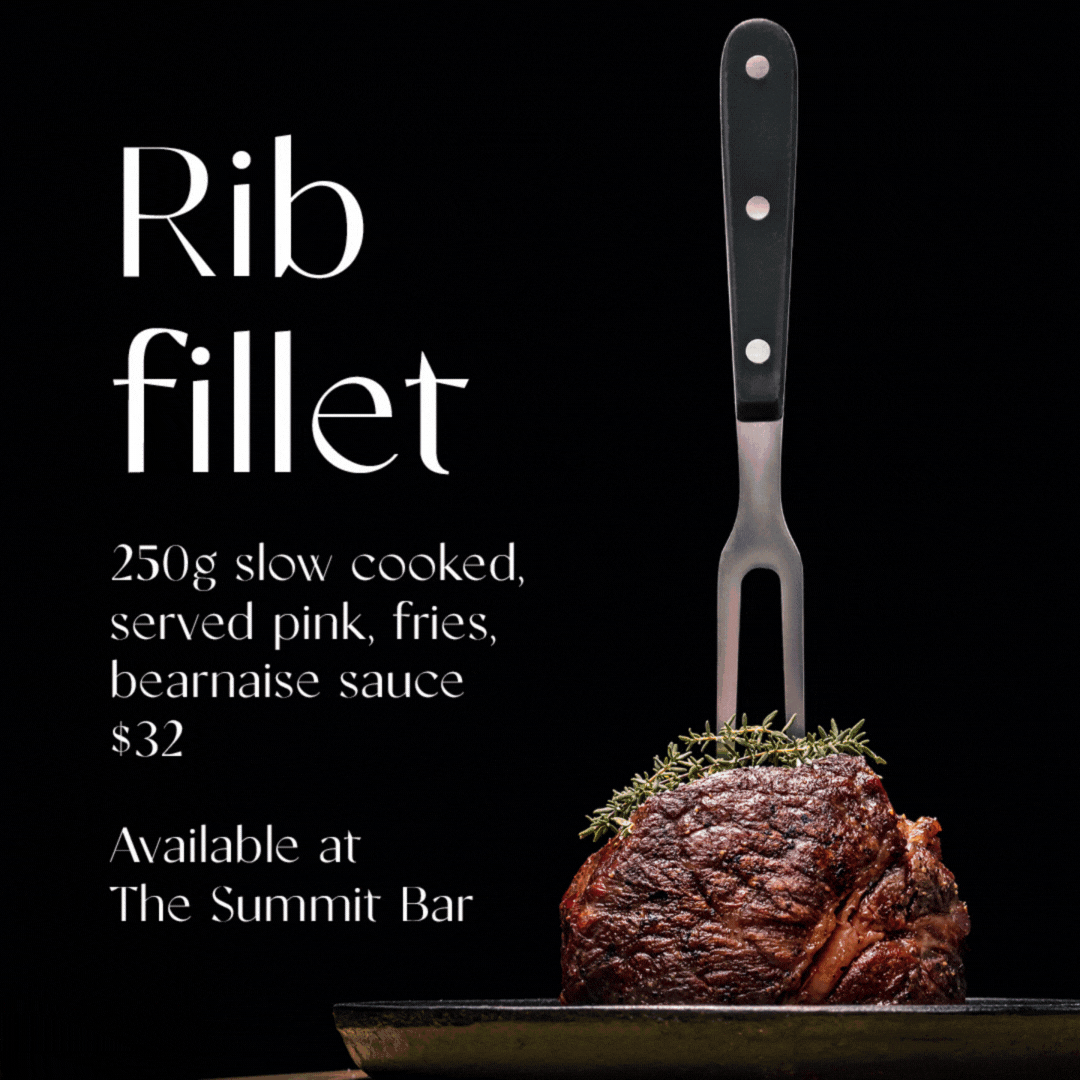 Tender, perfectly slow-cooked rib fillet served with fries and classic béarnaise. A refined take on a steak-and-chips moment, best enjoyed with a cold drink and that sweeping Brisbane view.